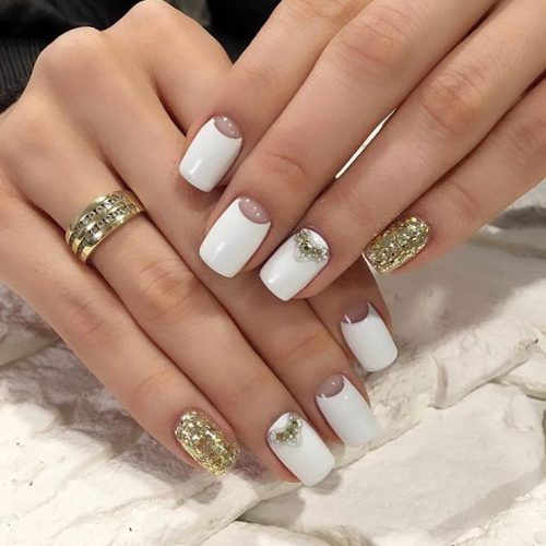 Essayez de réaliser un dessin d’ongle doré en utilisant la technique du dégradé, en combinant le luxe de l’or à la tendresse d’une teinte blanche.