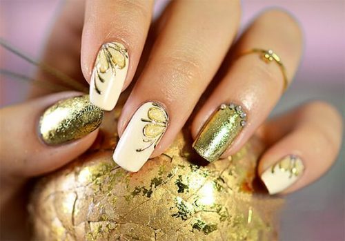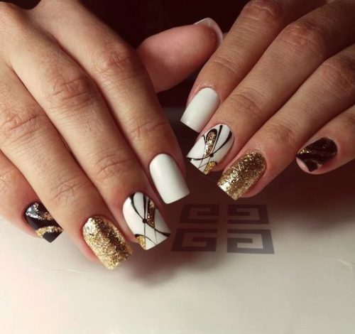 Il y a beaucoup d'options, alors une telle manucure dorée est facile à réaliser même à la maison.