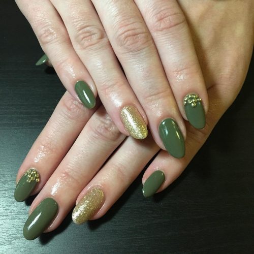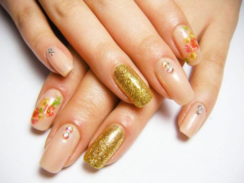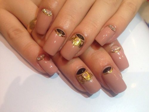 Une manucure dorée avec des strass est probablement la solution la plus merveilleuse que les professionnels puissent présenter aux femmes.