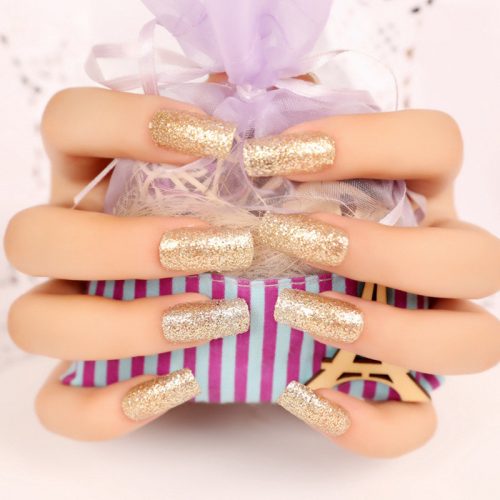 La manucure dorée est par nature très luxueuse, il est donc préférable de réaliser tous les ongles avec un tel vernis dans des cas particuliers.