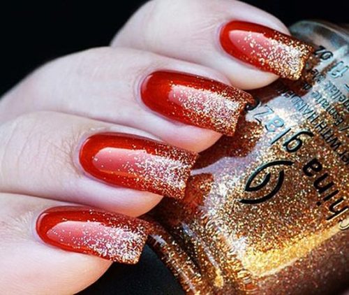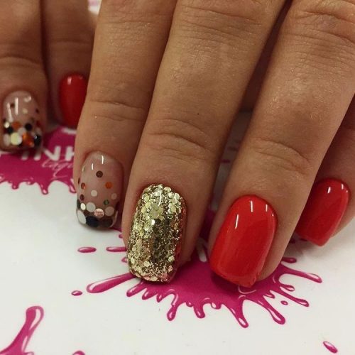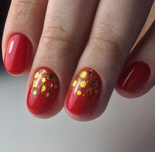 La manucure dorée est très colorée, en combinaison avec le rouge, le noir, le blanc, le beige, le bleu, le vert, le bordeaux, le bleu, le rose et d’autres nuances que vous souhaitez diluer avec le doré.
