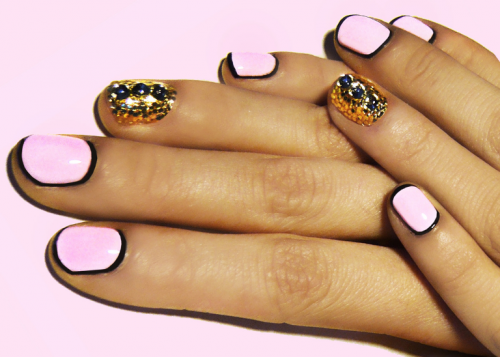 Vous pouvez décorer un ongle avec des œufs, disposer une bande, un trou avec des perles, le combiner avec des perles de couleurs différentes et même les déplacer pour obtenir une manucure dorée multicolore - moderne et inhabituelle.