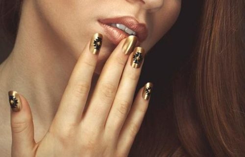 Une délicieuse manucure dorée est avant tout une manucure dorée que vous simulez sur vos ongles à l’aide de vernis aux tons dorés.