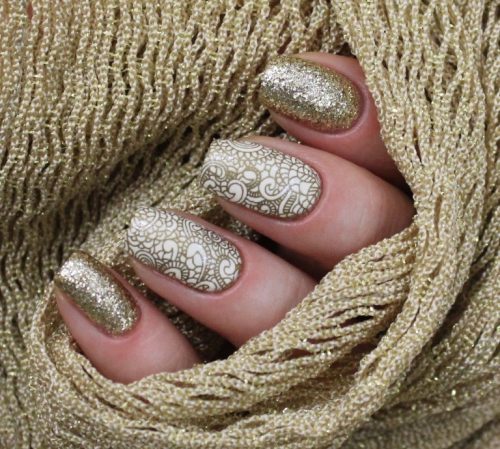 Les vernis modernes ont tellement de facettes que vous pouvez réaliser une manucure dorée avec une surface lisse, brillante et mate et des motifs prêts à l'emploi.