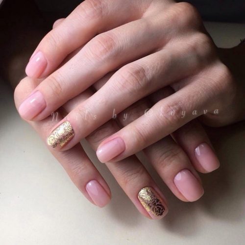 Si vous ne pouvez pas couvrir tous les ongles avec un tel motif, une manucure dorée avec une feuille métallique ne peut décorer qu’un seul ongle, ce qui ajoutera une touche de brillance à votre image.
